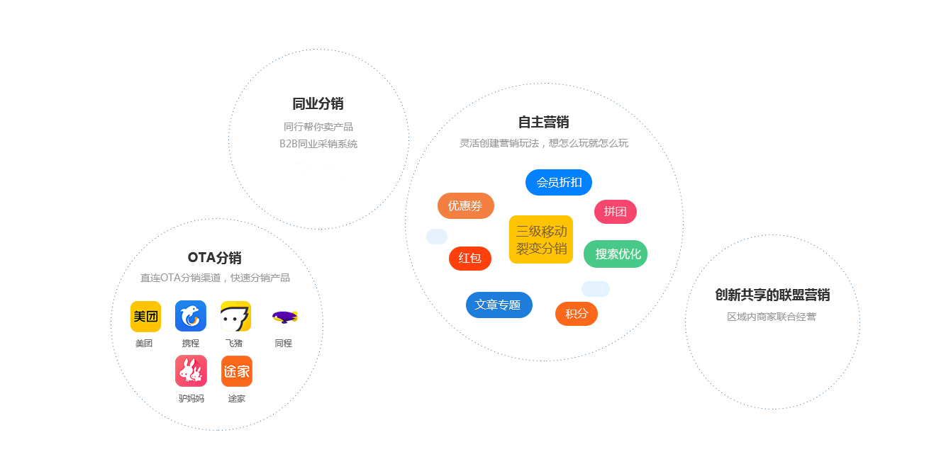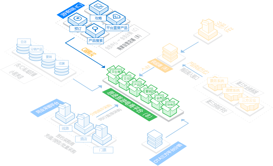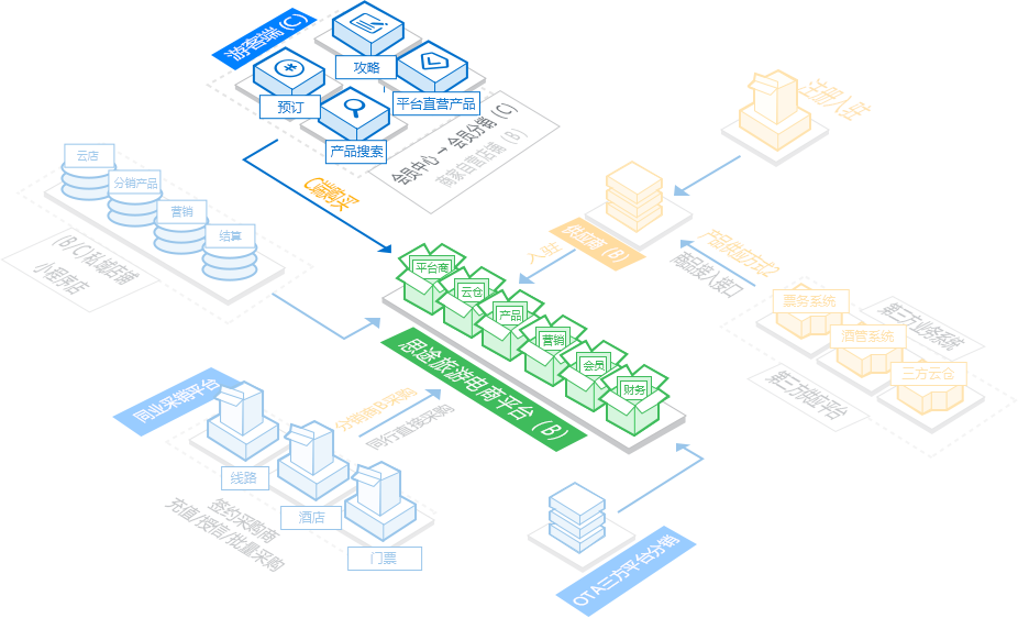 支持業(yè)務(wù)模式:B2C旅游零售電商、B2B旅游同業(yè)分銷(xiāo)、B2B2C旅游供銷(xiāo)平臺(tái)