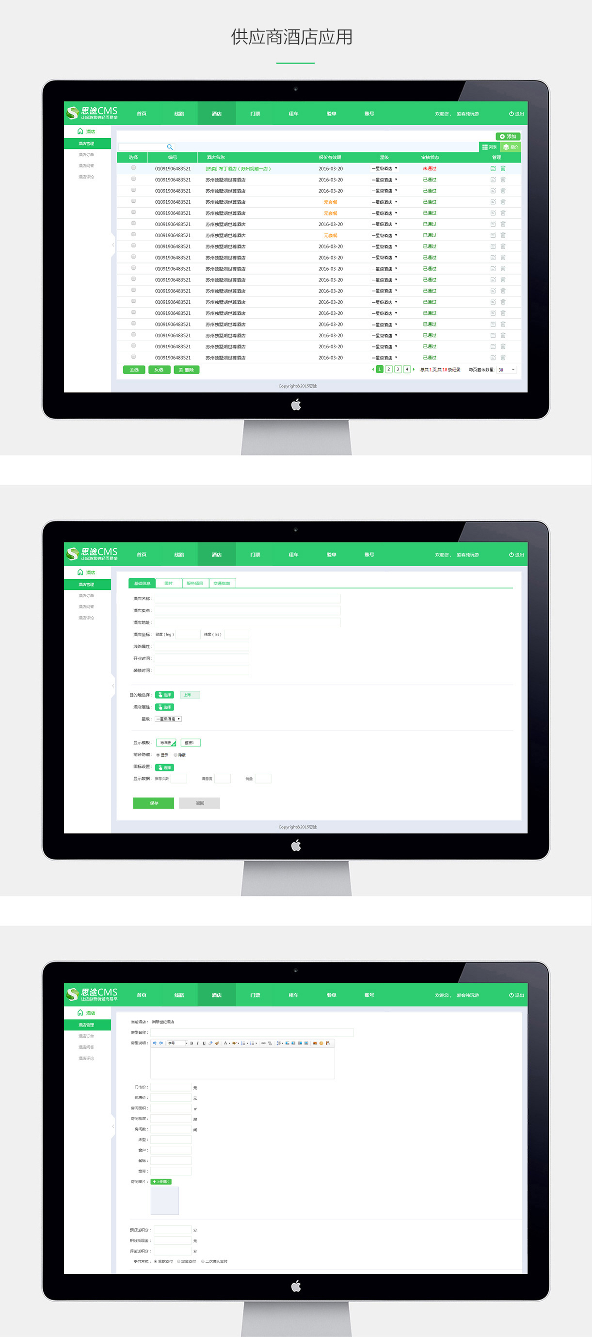 供應商(商家)注冊到平臺,與平臺簽訂合作協議,確定傭金比例,結算政策等,商家自己上傳酒店產品與平臺約定好售價。平臺負責商品的審核,通過商家訂單管理,或者商家驗單應用,完成訂單結算。
