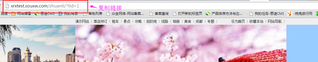 點擊保存按鈕生成專題,在后臺點擊專題跳轉到前臺,獲得專題鏈接