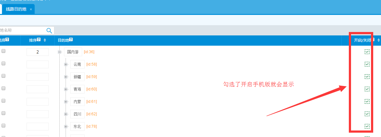 關于手機版的產品篩選頁目的地的顯示設置,以線路產品為例: