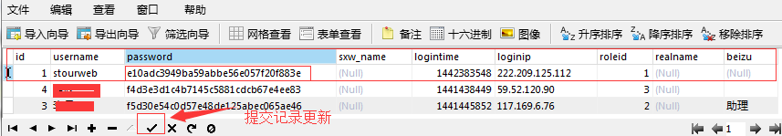 4、提交記錄更新之后,系統的后臺管理員帳戶就被重置成了
