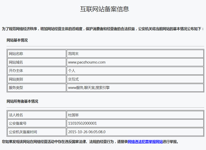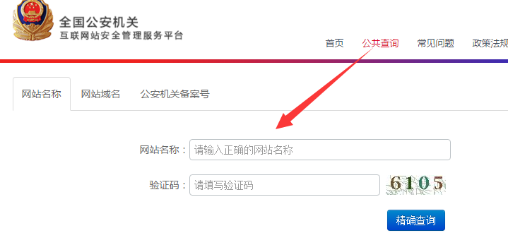 用戶可以通過本網站所提供的公共查詢功能,查詢網站是否曾經辦理過公安機關聯網備案手續。