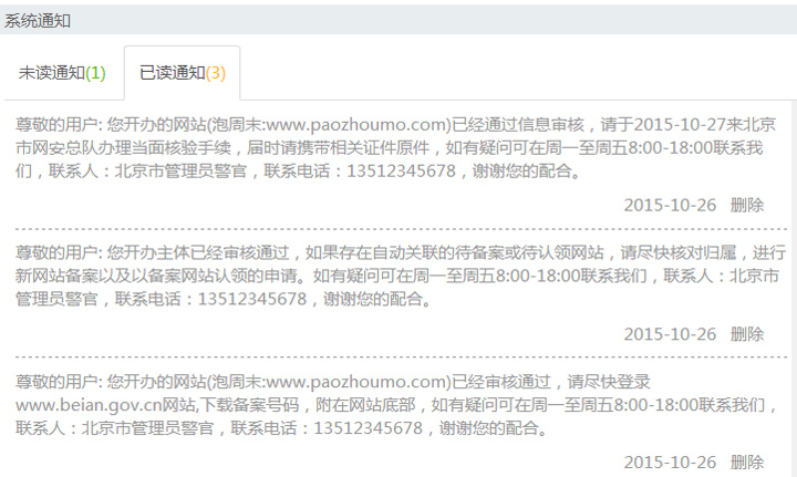 需要注意如果收到公安機關通知,未在規定時間內完成備案認領的網站將會有被關停的危險。