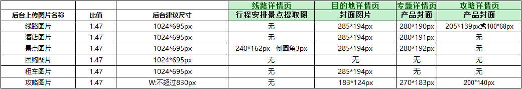 在線路詳情頁中顯示:會裁剪比標準尺寸長的邊