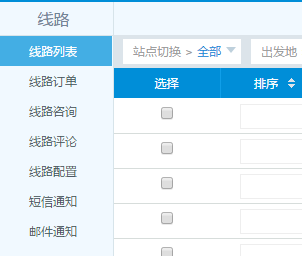 子項功能包含,以線路為例:線路產品管理、線路訂單、線路咨詢、線路評論、線路配置、線路相關通知配置等功能