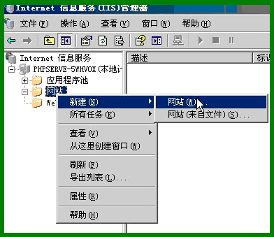 展開(kāi)“網(wǎng)站”樹(shù)型節(jié)點(diǎn),刪除默認(rèn)網(wǎng)站,然后新建一個(gè)網(wǎng)站(如圖所示)