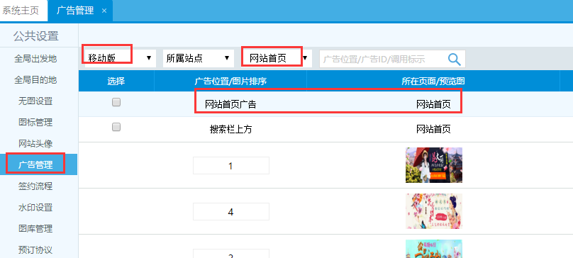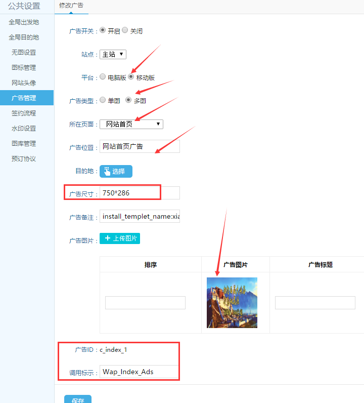 第二步:進入后選擇“移動版”,找到相應的廣告位,廣告圖片的尺寸根據后臺提示的上傳;