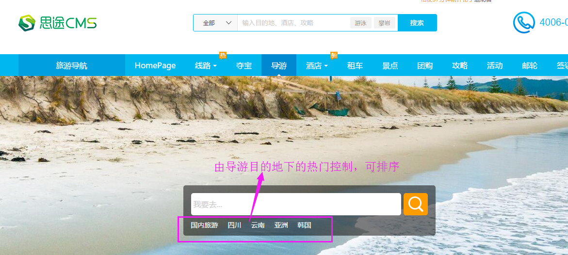 5、熱門目的地:開啟熱門目的地,按照排序展示