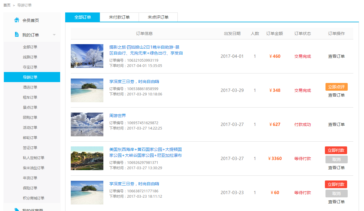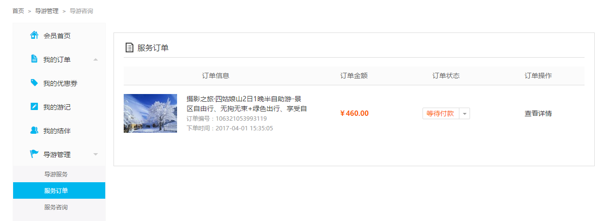 3、會員中心導游訂單