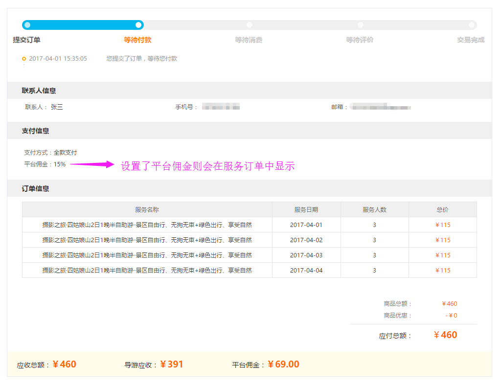 6、平臺傭金:導游服務產品銷售后,平臺的傭金