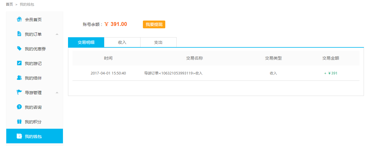 4、導游的金額存在我的錢包里面