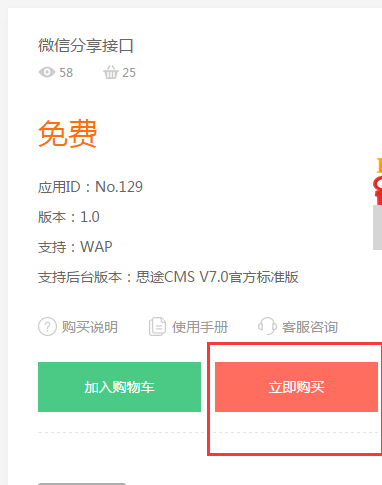 1.1在應用商城購買http://www.20294.net/app/129.html,微信分享接口應用。