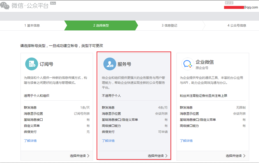 直接輸入驗證碼,并且設置好密碼,點擊注冊,然后選擇服務號: