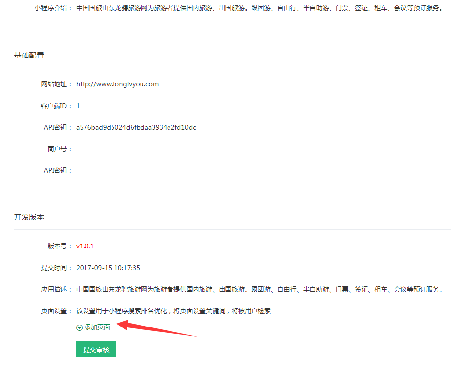 這個添加頁面是設置小程序的關鍵詞等優化信息的: