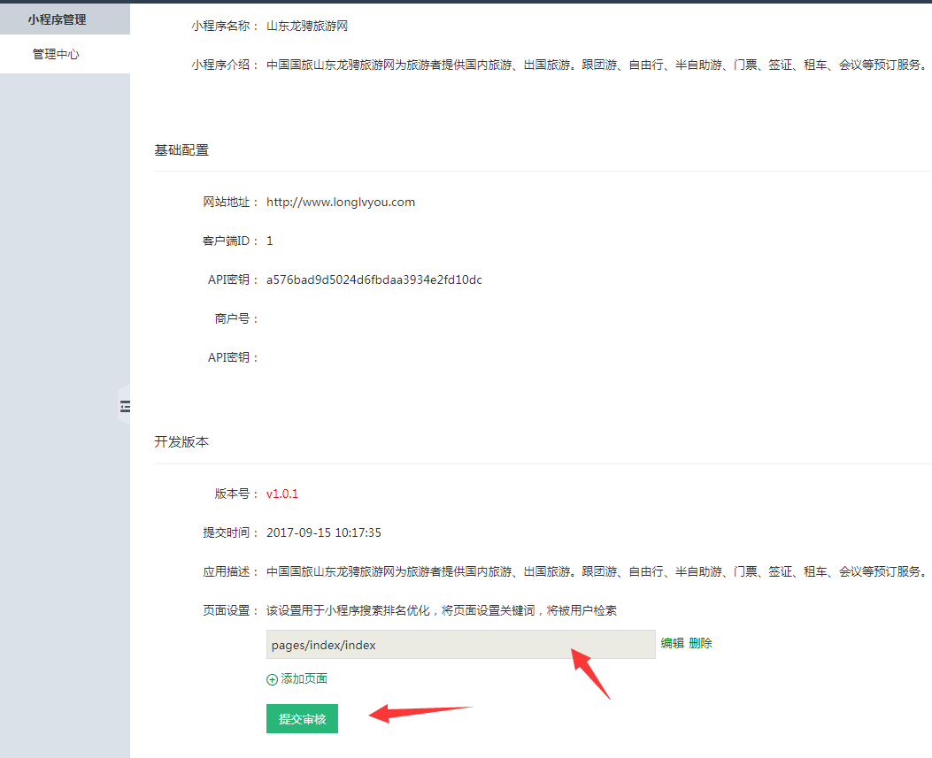 客戶端ID和api密鑰就是第二步將網站后臺生成: