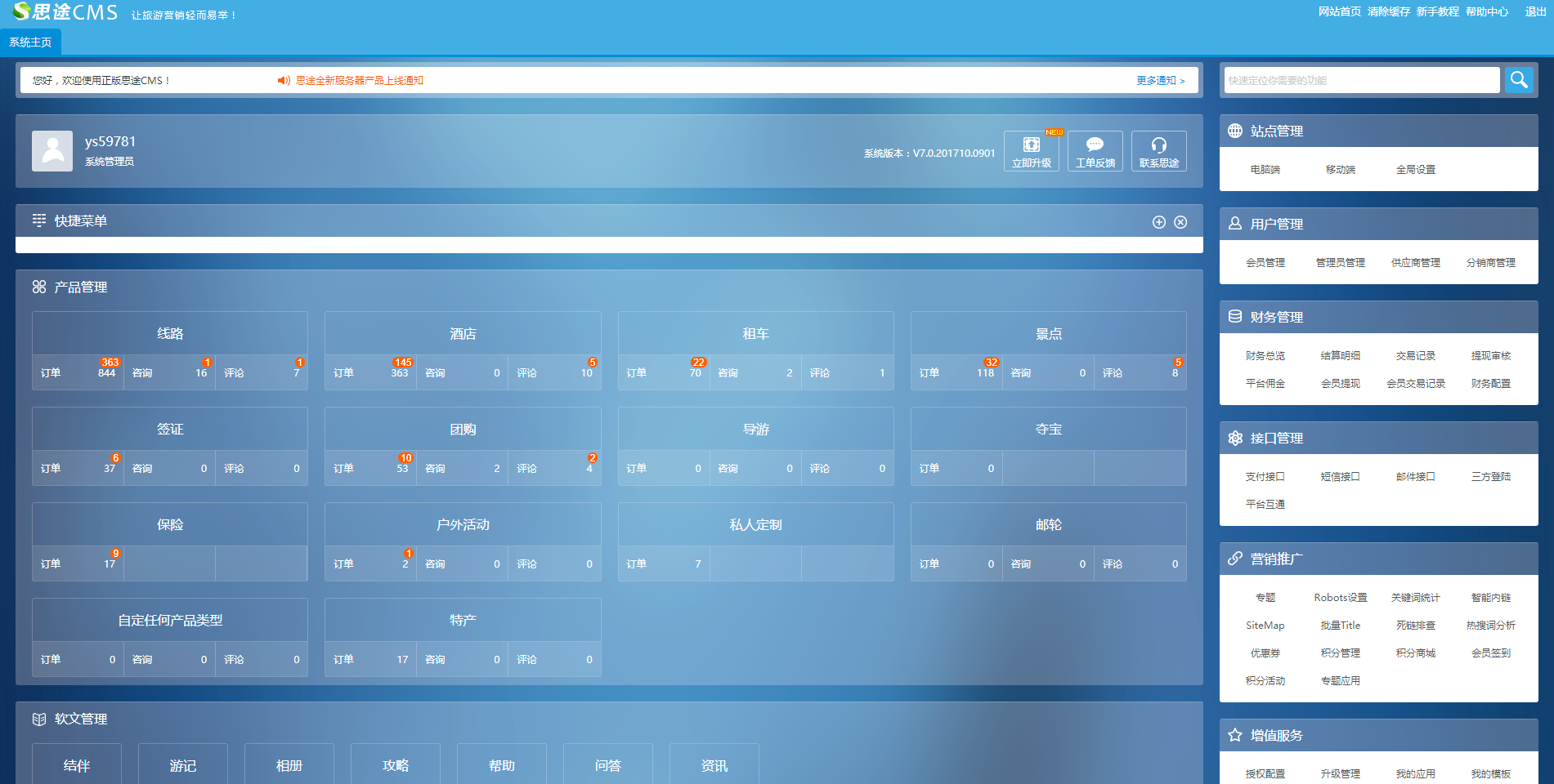 這一次,我們重新設計了思途CMS系統的后臺管理界面。除了大家能看到的設計風格的變化之外,還融入了思途獨創的營銷概念,下面來給大家一一劃重點。