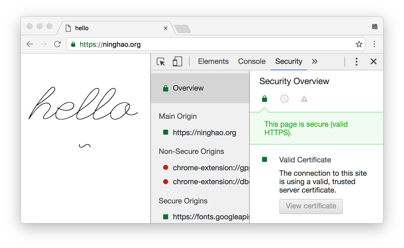 如果正確的配置了讓服務器使用 SSL 證書,會在地址欄上顯示一個綠色的小鎖頭圖標。