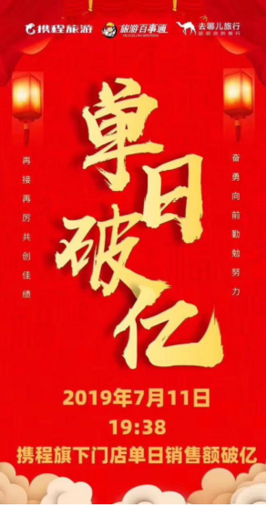 7月11日,攜程創下了全天總交易額逼近1.2億的旅游線下門店銷售的記錄。也再次傳出了傳統旅行社正面臨行業洗牌的聲音。