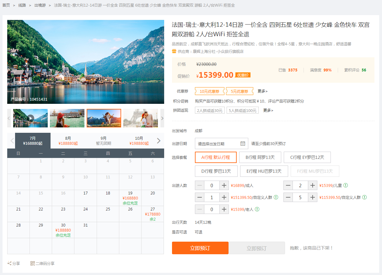 和途牛的做法一樣,新版的線路模板也將團期、優惠促銷等信息放在了游客瀏覽頁面時第一眼就可以看到的顯眼位置,相比舊版的線路詳情頁,重點信息更加突出,也可以更好地起到促成轉化的效果。