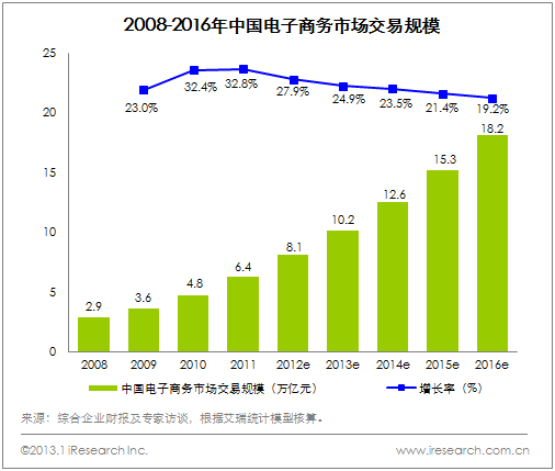 市場規模:2012年中國電子商務市場交易規模8.1萬億元