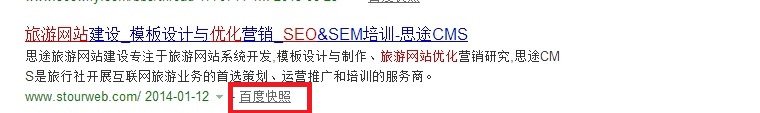 百度推廣只要您付費就能帶來源源不斷的訪問量,但是網(wǎng)頁有百度快照不代表網(wǎng)站就有源源不斷的訪問量,如果想讓自然搜索結(jié)果排名靠前獲得免費的網(wǎng)友訪問網(wǎng)頁,需要做網(wǎng)站架構(gòu)優(yōu)化、網(wǎng)頁內(nèi)容優(yōu)化等相關(guān)的工作,思途旅游互聯(lián)網(wǎng)營銷學(xué)院推薦您查看:
