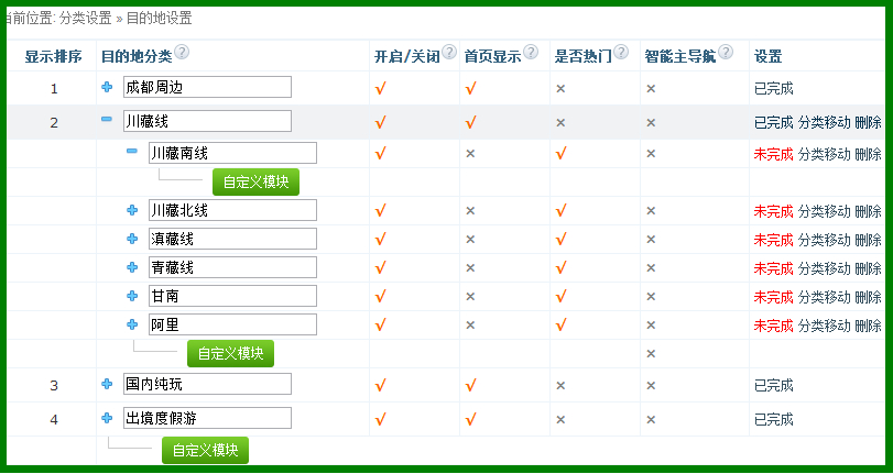 1、目的地分類是思途CMS的產品和信息分類主線,只有目的地開啟,對應的產品或信息才可進行分類關聯;