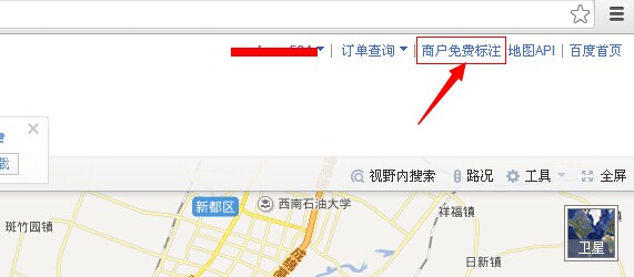 打開百度地圖http://map.baidu.com/,登陸百度賬號,在右上角有一個商家免費標注,點擊進入!