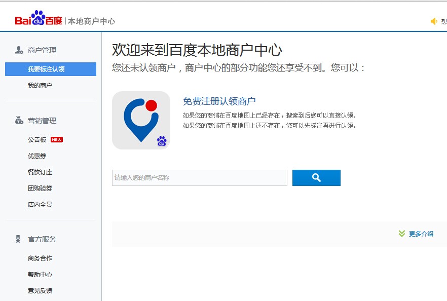 下一步http://nlbc.baidu.com/lbs-lbc/index.action?from=maptop在下圖輸入框內輸入自己商鋪的名字,如果能搜得到,直接認領即可,并上傳相關資質,如果查詢不到就要先到地圖中標注店鋪位置,然后認領
