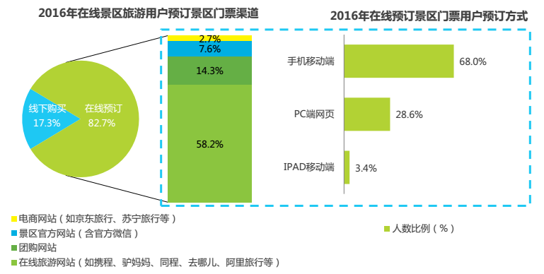 82.7%在線景區(qū)旅游用戶在線預訂景區(qū)門票