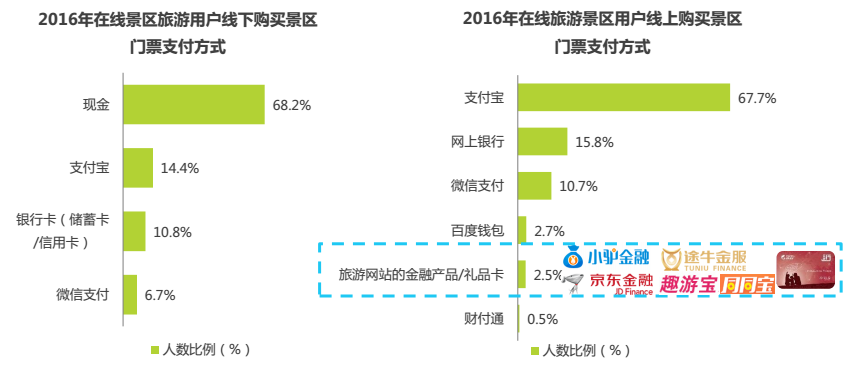 現(xiàn)金和支付寶是景區(qū)旅游用戶線下/線上購買門票主要方式