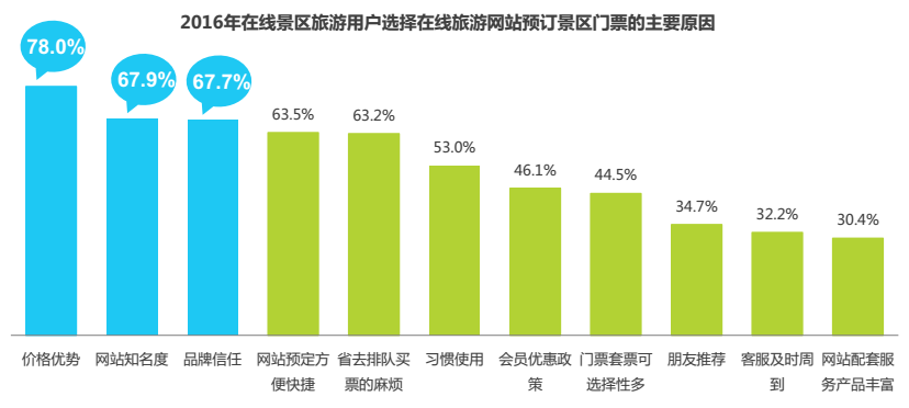 價格、知名度和品牌信任是用戶在線預訂景區(qū)門票的主因