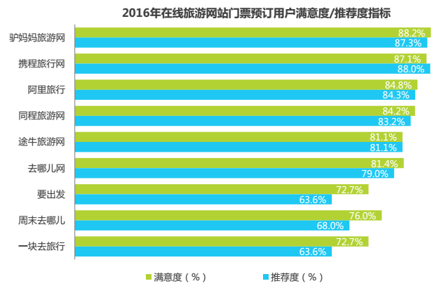 驢媽媽、攜程、阿里旅行景區(qū)門票預訂滿意度位居前三位