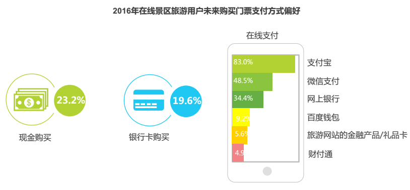 83.0%景區(qū)旅游用戶購買門票偏好支付寶支付