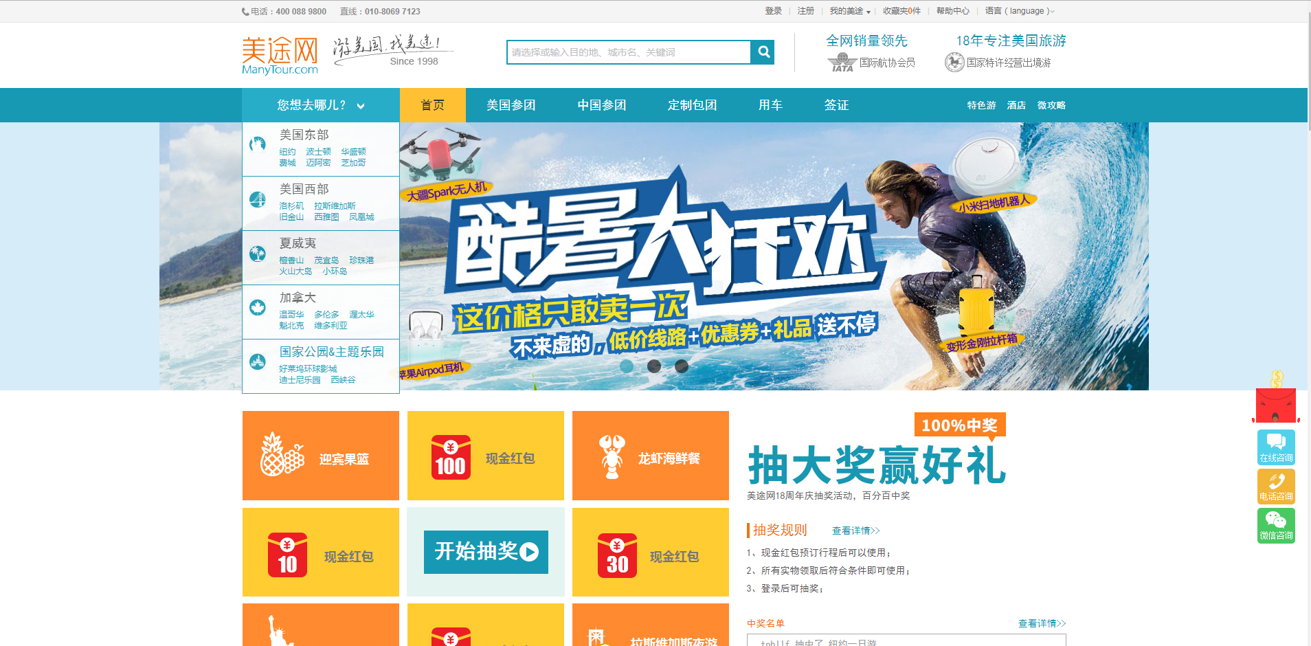 我們對一個人的印象是由對方的外貌和衣品組成,試想一下,如果一個長相不好、衣著邋遢的人,我們會有興趣繼續了解下去嗎?同理,首頁也是網站的門面,用戶往往會通過一個網站的首頁對這個網站進行評價。若是首頁都建設不好,特別是本來就對美有一定要求的旅游行業,用戶自然沒有興趣瀏覽更多的頁面,更不用說了解其產品好不好了。站長做好網站首頁的優化能夠極大的提高用戶的體驗度。