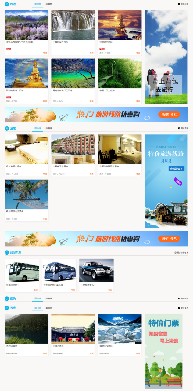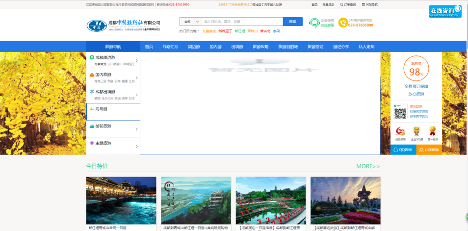 對用戶來說,訪問一個旅游網站,如果第一眼覺得這個網站很好,一般是有兩個方面的原因,第一個原因是網站結構布局良好,第二個原因是首頁Banner圖吸引力強。Banner是網站中最具視覺沖擊力的部分,對于旅游網站來說更是如此。一張清晰美觀的高清Banner圖,直接讓整個網站變得高端起來。如果平常有關注過私人訂制旅游或者個性化旅行網站的站長,就會知道這些網站的Banner圖都非常美觀大氣,給人一種高端上檔次的感覺。如下圖是使用思途CMS搭建的深度行旅游網的首頁Banner: