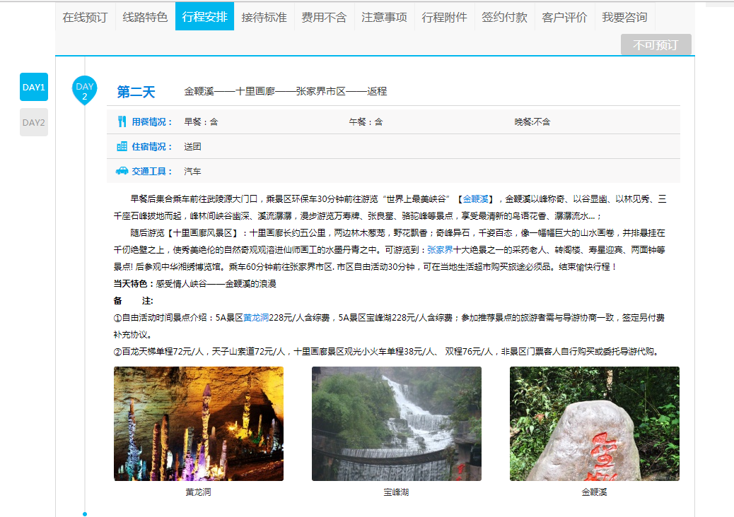 最后,行程安排要圖文相配,畢竟文字的說服力有限,只有文字結合當天對應景點圖片,才能讓游客更加信任這條線路,認為這條線路值得自己去,如下面兩個網站的行程安排對比,自然可以看出哪一個網站更有吸引力: