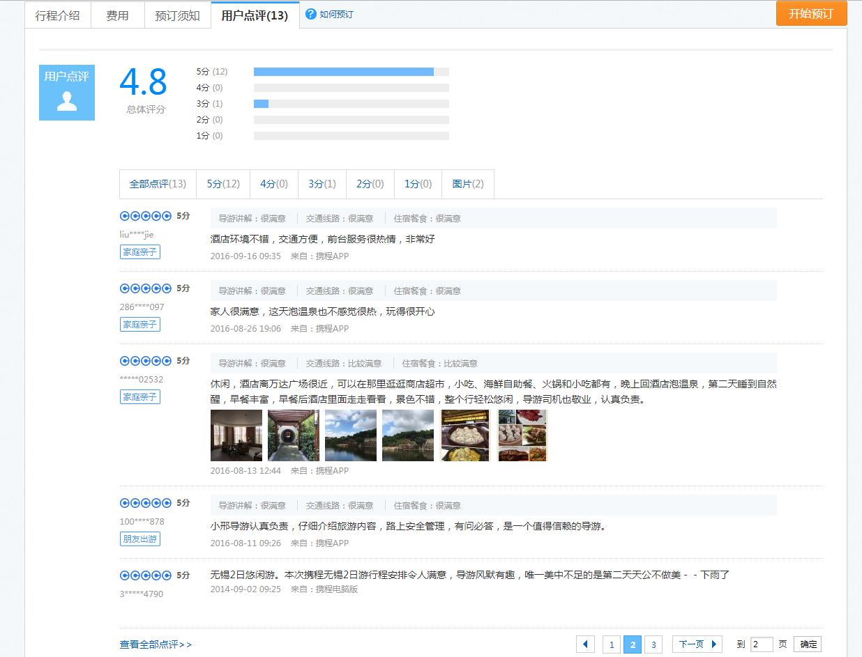 平常大家逛淘寶有這個感受,想買一個東西的時候會專門去看其他買過該產品客戶的評價,若是大多數人都是好評,并配上圖,自己大概也就會買。同理,旅游網站其他用戶的點評是很多正在選擇的用戶都會關注的板塊之一,這些點評意見可能會對他們的最終選擇起到很大的引導作用,增加用戶的信任感,也讓用戶在瀏覽的時候更有參與感。但是很可惜,太多太多的旅游網站都不重視這一塊,客戶點評這個模塊一片空白,不能起到引導客戶的作用。如下圖兩個網站對比,優劣一眼就看出來了: