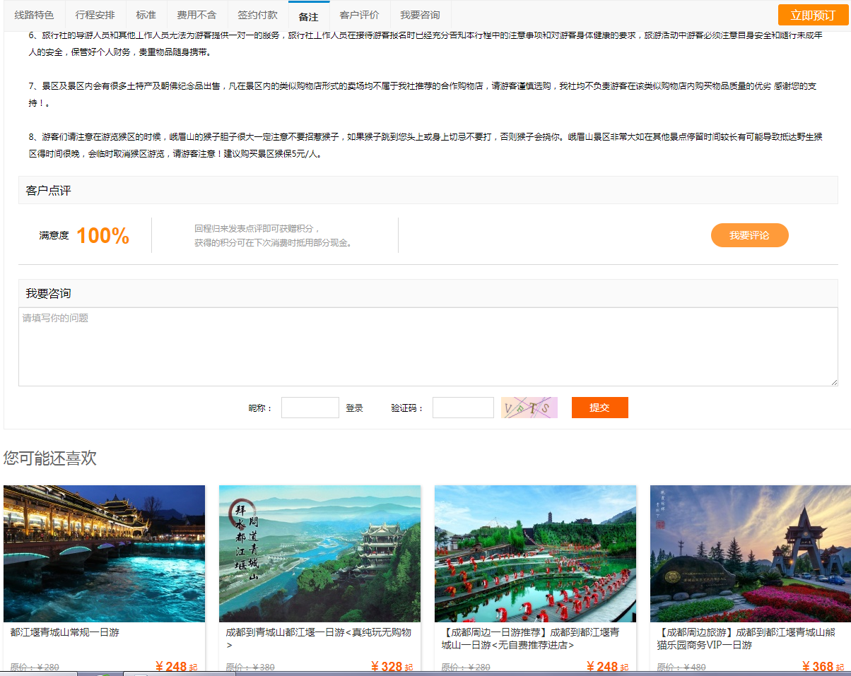 一條旅游產品,不可能滿足所有人的需求,有可能是某一天的行程安排自己不滿意,這時候就需要相關產品推薦了。試想一下,若是產品詳情頁就只有這條產品的介紹,游客看了不喜歡,他們也不知道有沒有相似行程,那么直接就選擇退出網站了。若是這時候有個提示,讓他知道:不喜歡這條線路產品沒關系,我們為您提供相似線路。自然而然,產品成交率就提升了,使得網站更利于營銷,對網站的盈利有很大的好處。如下圖所示: