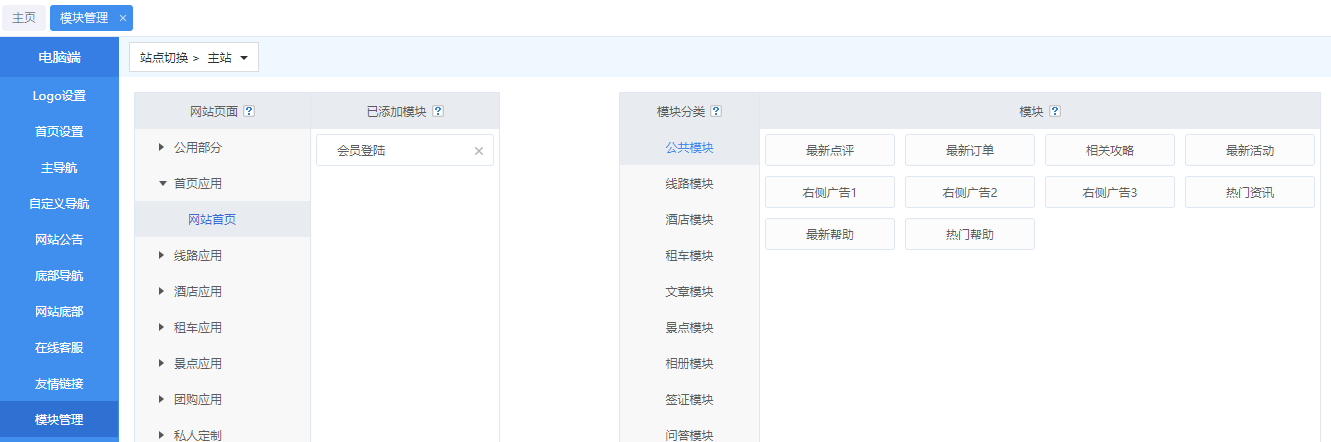 登錄后臺系統(tǒng) > 站點(diǎn)管理 > 電腦端,找到模塊管理。