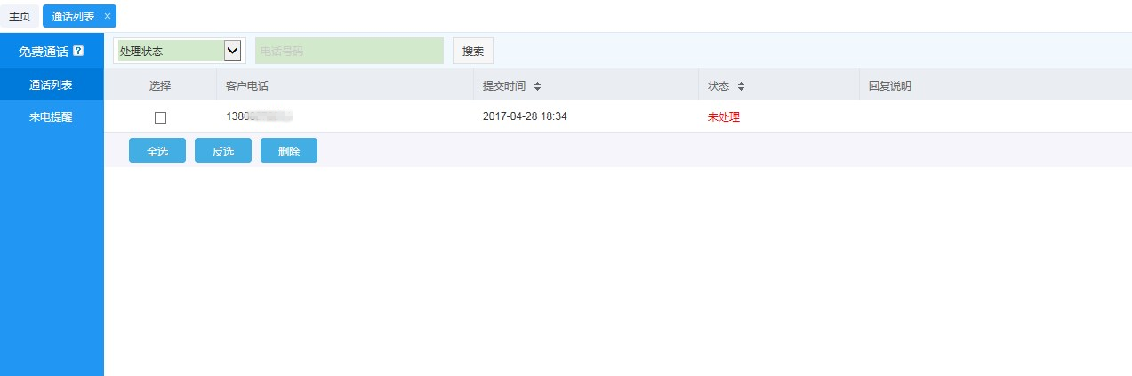 登錄后臺系統 > 營銷類-輔助營銷 > 免費通話