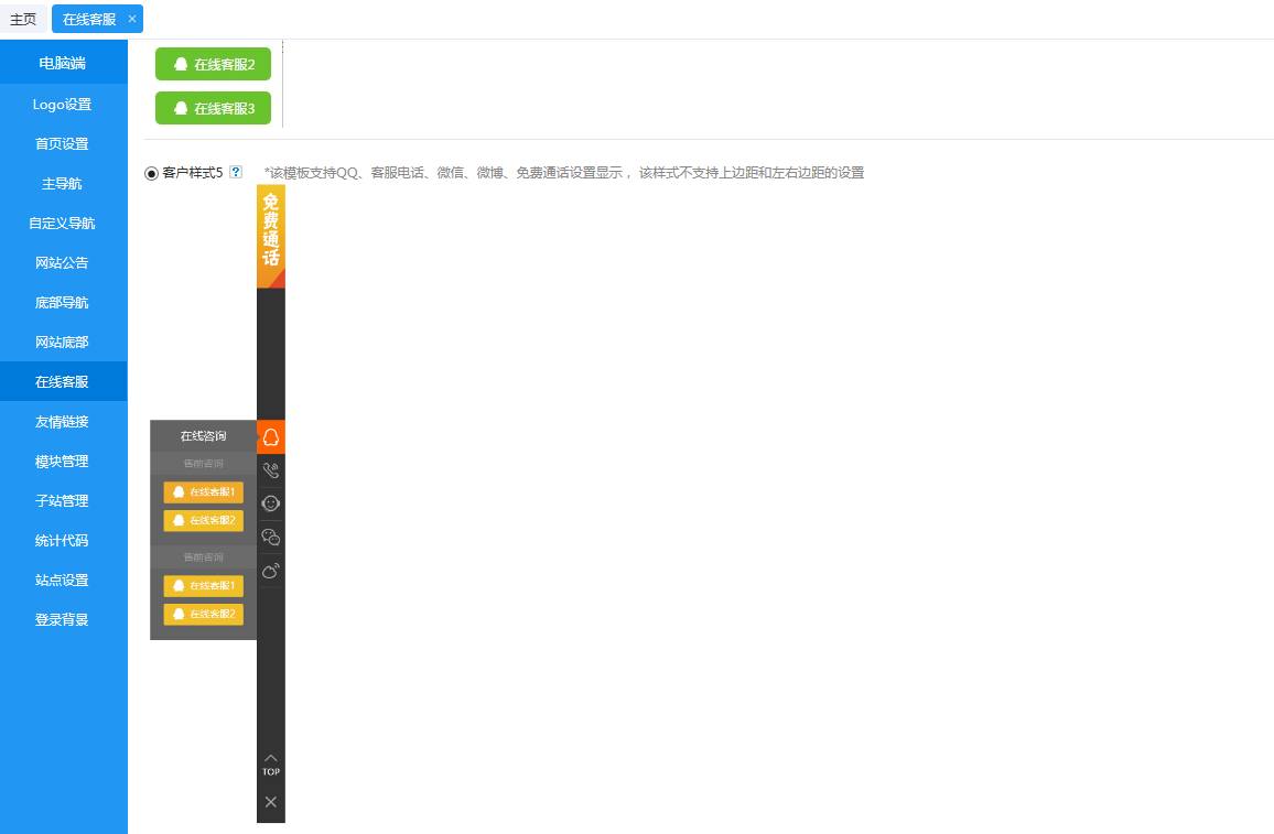 注意到了嗎?“在線客服” 功能中選擇了具有免費通話功能的在線客服樣式,這又是思途的一個貼心小功能。