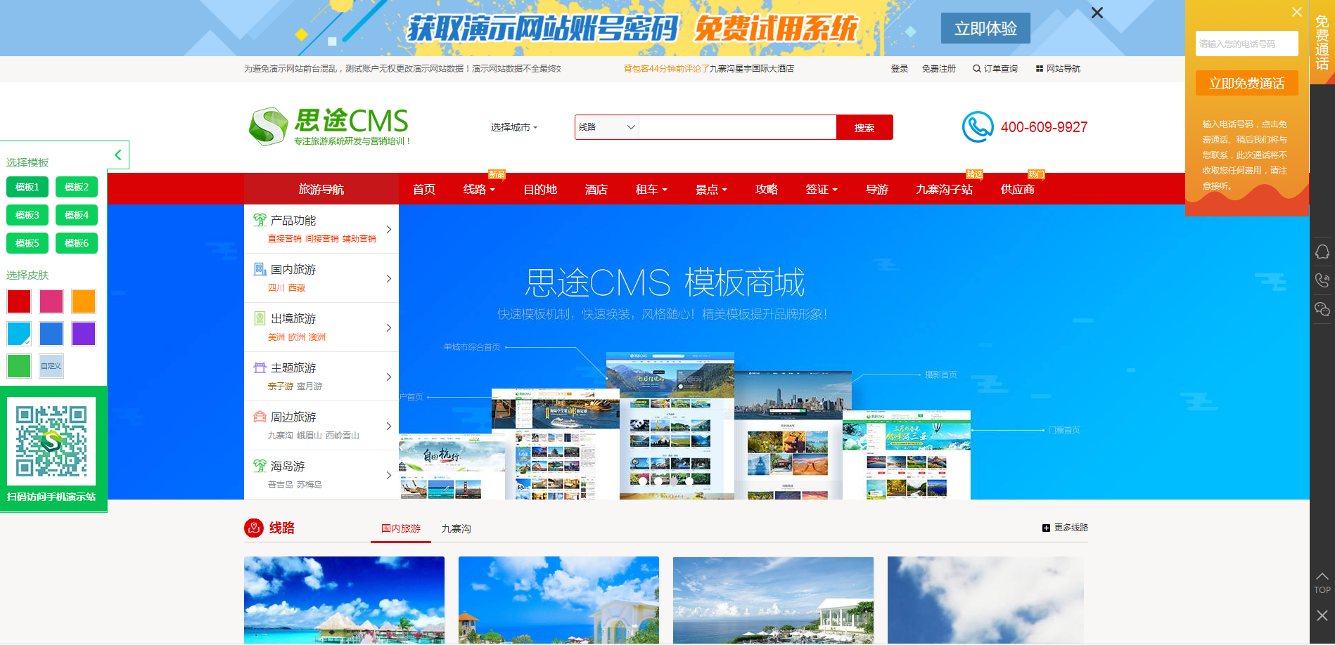 思途CMS一直倡導為用戶打造個性化風格網站,連客服電話都換不了,怎么算得上個性化呢?所以,我們還支持自由選擇在線客服的樣式來貼合你的旅游網站風格。