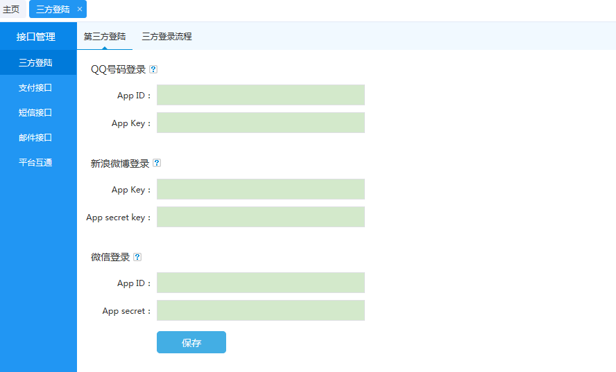 登錄后臺系統 > 接口管理,找到三方登陸