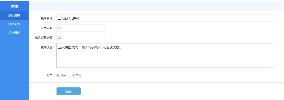 現(xiàn)在,要建立這樣一個理想的拼團購流程,只需在安裝應(yīng)用后,通過思途后臺進行相應(yīng)的操作就可以完成了。沒有任何規(guī)則的限制,所有的返現(xiàn)政策和規(guī)則均由平臺根據(jù)自身運營情況來設(shè)置,和平臺的優(yōu)惠政策也沒有沖突。哪些產(chǎn)品可以拼團,返現(xiàn)根據(jù)人數(shù)怎么規(guī)定,一切,都由我們商家說了算。