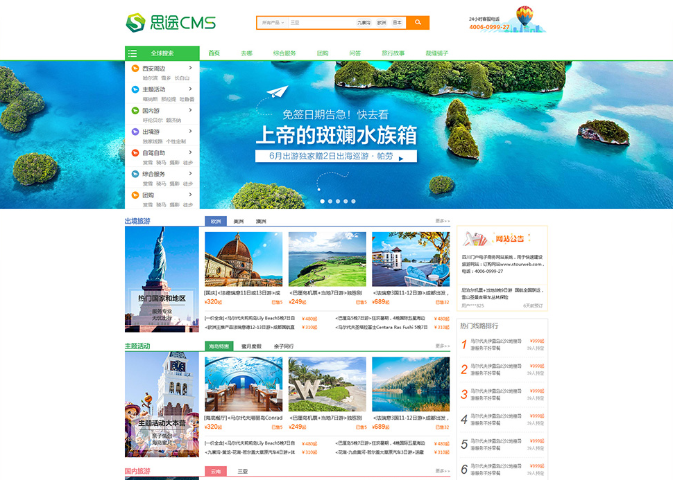 很多站長都會將途牛等OTA網(wǎng)站作為學習和參考的對象,因為這些大佬們的門戶首頁兼具精美和實用的特性。而思途仿途牛門戶首頁模板就是專為中大型旅游網(wǎng)站或綜合里門戶旅游網(wǎng)站打造。這套模板的功能齊全,基本涵蓋了線路、酒店、門票等所有常見業(yè)務。欄目分類也較為清晰,游客可以非常直觀地查找到自己所需要的旅游產(chǎn)品。同時,這套明星模板還設計了高清大圖Banner以及點評攻略等引導模塊來吸引游客,引導性也很強哦!