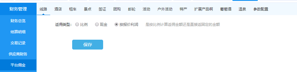 怎么辦呢?考慮到大家的業務實際的需要,產品小姐姐機智的提出了一個兩全的辦法,直接在平臺傭金的返傭類型中,新增了按照報價利潤返傭的功能,設置了這個類型的產品將全部按報價的利潤來作為平臺收入。由此一來既兼容了舊的方案,又實現了按套餐利潤給平臺反傭的功能,產品小姐姐的心思真是很巧妙了!