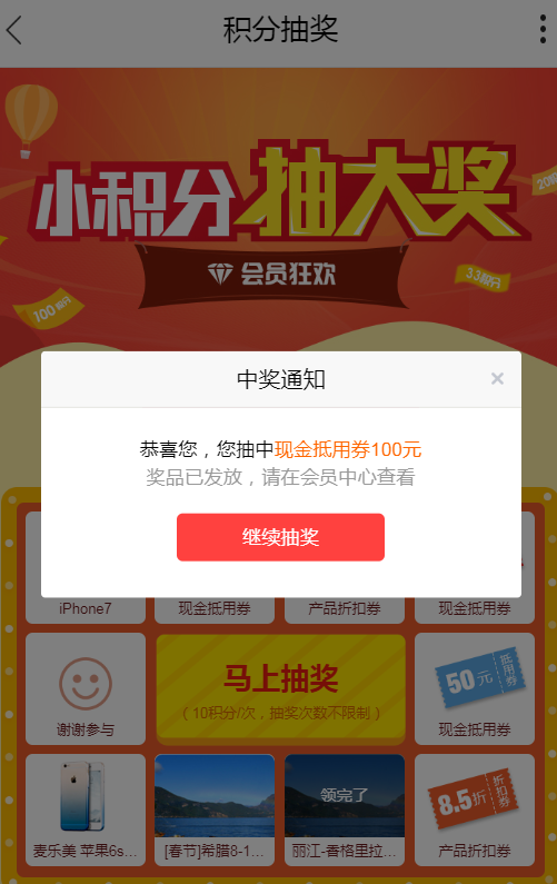 優化三:新增手機版積分抽獎