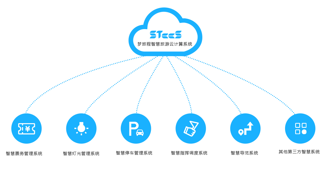 思途的夢旅程智慧旅游云計算系統STCCS作為實現景區(區域)整體智慧旅游的核心系統,其重要性就相當于人體的中樞系統。它基于SaaS模式,采用模塊化、可擴展應用的模式,我們可以簡單的把它想象成一個超強的處理平臺,我們可以根據自身的智慧經營需求,在系統上自由拓展智慧票務管理系統、智慧停車管理系統、智慧導覽系統等。而且,STCCS還可以通過不同的應用連接不同的物聯終端,實現線上線下軟硬件一體化。