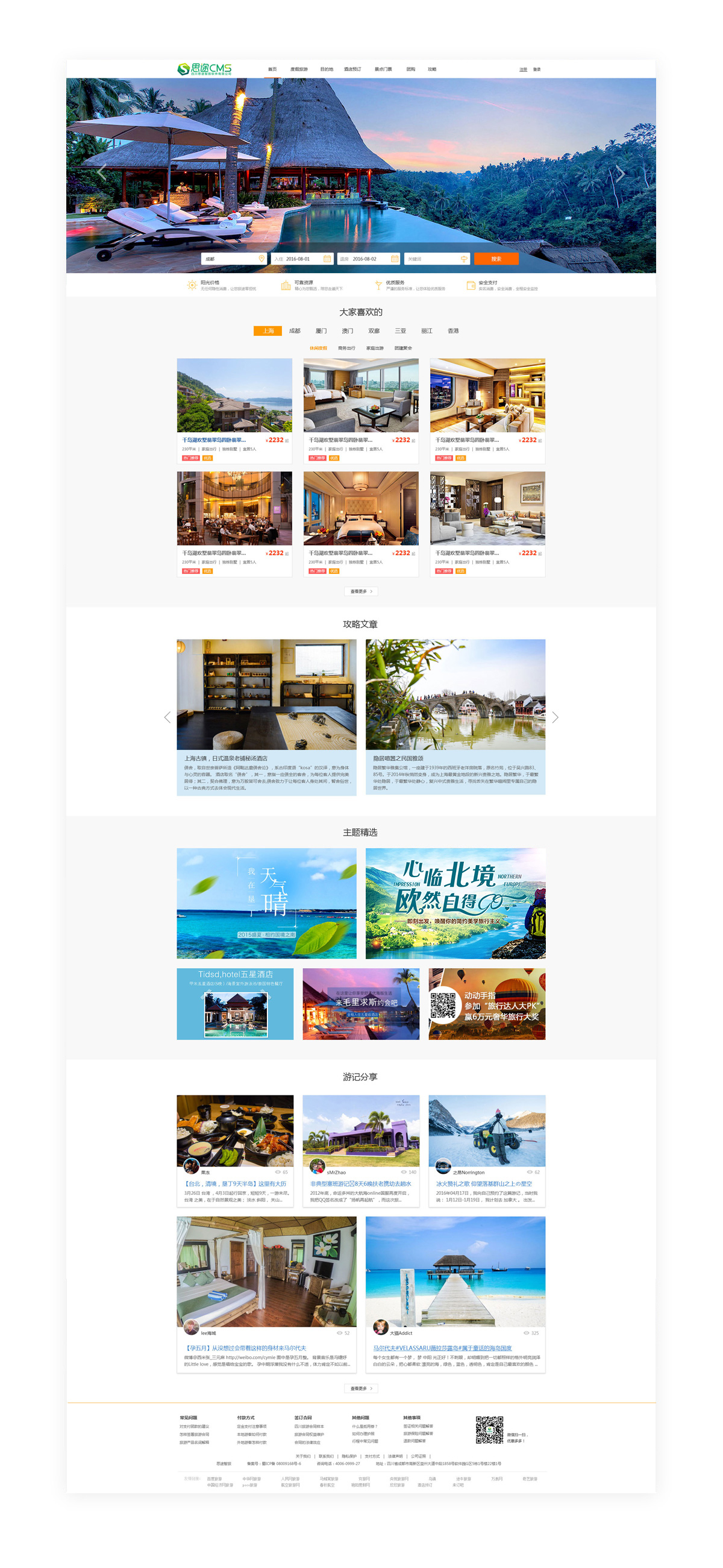 (網(wǎng)站首頁(yè))此套仿途家酒店首頁(yè)模板,適合以旅游酒店預(yù)訂為主要業(yè)務(wù)的網(wǎng)站使用。模板分類清晰,支持首頁(yè)輸入入住城市,入住時(shí)間進(jìn)行快速篩選。還可設(shè)置入住類型,提供編輯精選推薦,方便游客選擇預(yù)訂。配合首頁(yè)攻略文章和游記分享選項(xiàng),網(wǎng)站內(nèi)容豐富,利于在網(wǎng)站進(jìn)行軟文推廣。此套仿途家酒店首頁(yè)模板,是適合旅游酒店預(yù)訂網(wǎng)站的優(yōu)秀模板。*該模板不支持換膚。