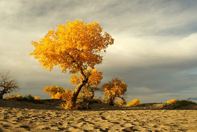 西北偏北-額濟納旗胡楊—楊柳科楊屬胡楊亞屬的一種植物,常生長在沙 漠中,它耐寒耐旱耐鹽堿抗風沙,有很強的生命力。 “胡楊生而千年不死,死而千年不倒,倒而千年不朽” 胡楊是生長在沙漠的唯一喬木樹種。葉子隨著時間變 化,盛夏綠色,深秋金色,冬季紅色。目前大部分的 胡楊林集中在內蒙古和新疆兩個自治區內。這是此行 的主要目的地,太多的感受就用下面的文字和照片和 你分享。